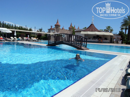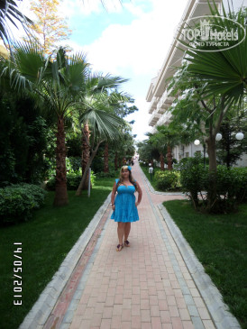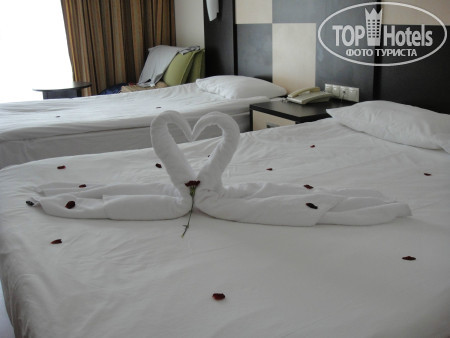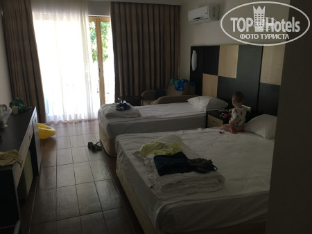 Ну вот и закончился наш отпуск и пока все впечатления не подзабылись , а так тоже бывает , делюсь с вами ) Начнём с классики - ездили с турфирмой TUI 8 ночей 7 дней , перелёт авиакомпанией туда Corendon ,оттуда Sun Exspress . Туда без опозданий, обратно была задержка рейса , но не критично . Итак , прилетели, опять долго ,долго ехали и долго долго ждали багаж , слава Богу всё было на месте , затем поход к тур. представителю и начался квест . Сообщили номер Трансфера , а на какой стоянке он стоит (хотя бы ) ищите сами , а там тьма тьмущая в 10-15 рядов и нескончаемо..... ну нашли , были последние , поехали. Трансфер хороший , чистый , быстрый заезд был ещё в один отель. Ехали примерно час . Приехали и тут весь мой настрой на позитив выветрился . Зашли , сразу Reception ,показалось всё мрачным (заезд был уже поздно вечером после 22 :00 ) Заселение сразу , помощь с багажом тоже присутствовала ,спасибо . Номер был на том же этаже , где и Reception ,но в другом строении , где можно перейти по крытому переходу . В коридоре ковролин ,думаю, чтобы шаги приглушить, но грязненький ,да и в течении отпуска его никто и не чистил, если честно . Номер был просторный , в номере большой вместительный шкаф , в нём сейф , одна односпальная кровать и одна двуспальная , где матрас был один и мы с него скатывались ))) , кресло дополнительно , плоский ТВ , есть русские каналы, но их очень мало 2-3 программы ,по -моему , немецкие, турецкие ,польские . У нас был плохой сигнал ,возможно, у кого-то и лучше . Столешница длинная -это плюс, чайный уголок- это двойной плюс , хороший балкон с сушилкой -это плюс . Вид с балкона на апельсиновые деревья внутреннего двора и на балконы соседнего корпуса отеля ( нам не мешало , зато ,тихо ) . Холодильник с мини баром ,который пополнялся ежедневно и в котором присутствовали - 2-3 водички с газом, 2-3 без газа , пара упаковочек сока . В ванной комнате от отеля душ гель , шампунь , две шапочки для душа , два мыла , фен (зверски гудящий и ничего не сушащий ,впрочем , как и везде ))) , душевая кабина -напор воды очень хороший , без перебоев , вода уходит хорошо , печальненькие сама арматура душа ,ну и аксессуары ванной комнаты , так скажем ,фото прилагается ) . Полотенца белые, без пятен , дырок и т.д. , постельное бельё без нареканий -всё отлично ,но обратите внимание, что в данном отеле укрываться нужно покрывалом но в шкафу есть толстые одеялки , которые можно кинуть поверх и будет вам счастье. Уборка ежедневно , смена полотенец тоже , всё по желанию ,будьте внимательны , если вы не меняете полотенца и они у вас висят в душевой, то уборщица может их все собрать и сложить стопкой на сушилку в ванной или сделать вам дизайн на кроватях и тогда никто не узнает , где чьё ))) ,лучше кидайте сразу на пол. Контролируйте количество полотенец при заезде и после их замены . Питание в данном отеле - ресторан основной , есть а ля карт рыбный ,турецкий -мы не были ,не могу оценить. На пляже ресторанчик Оливиа , где можно перекусить с 12 до 16 часов , есть бар на бассейне , бар в главном корпусе , где нужно спуститься вниз и там же внизу кондитерская -пирожные , мороженое, на баре кофе ,коктейли и т.д. . Питание - разнообразное и каждый ,думаю, нашёл себе то , чем он был доволен. Пекут гезлеме и пышки по дороге на пляж . Территория отеля очень компактная , вышел с отеля и сразу всё под рукой- бассейн, бары, сцена , гезлеме -пышки , ресторан на пляже , пляж , море ))) Т