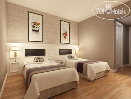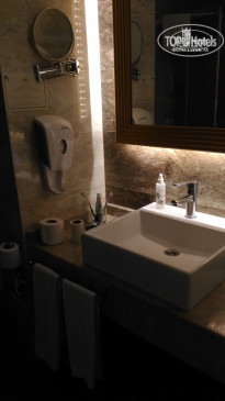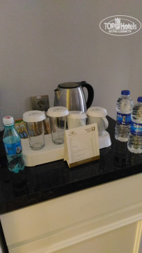 Комната. Комната достаточно большая. Кондиционер работает очень хорошо и бесшумно. Есть ЖК-телевизор, мини-бар заполнен газировками, водой, вафлями, чай, кофе, сахар. Есть чайник. Санузел в очень хорошем состоянии. Душевая кабина очень просторная. Шампунь и гель в больших дозаторах. Есть тапочки. Оставляли чаевые в рублях (100 рублей), уборка нас устраивала.