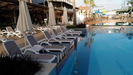 Отель и территория. Отель новый, чистый и ухоженный, видно, что поддерживают его состояние. Территории как таковой нет, огорожена заборами и как обычно есть горки, бассейны, бары. Очень шустрые лифты в отели, никогда не было толкучки, хотя отель был заполнен.