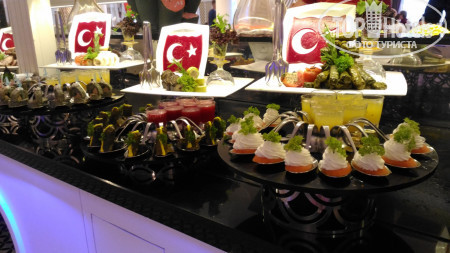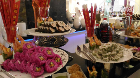 Питание. Еду и напитки можно взять только через персонал, что не очень удобно. Вечером на улице не всегда видно, что готовят на гриле. В принципе все есть и всего много, но вот приготовлено не всегда вкусно. Всегда есть различное мясо (тушенное, жареное, гриль), рыба, салаты, суп, большой выбор пироженных, фрукты. Делаются тематические вечера. Алкоголь, как обычно в отелях такого уровня, не очень. Перекусить можно на пляже, но выбор очень маленький. Очередей как таковых нет. Время завтрака и обеда позволяет найти всегда свободный столик, а вот ужин в этом отеле не очень удобен по времени с 18.30 до 20.30., нужно подходить либо к началу ужина, либо уже в 19.30 иначе сложно найти посадочное место. Официанты убирают посуду и приносят напитки, но лучше благодарить деньгами.